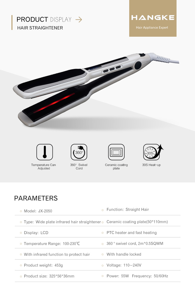 1.Wide plate infrared hair straightener