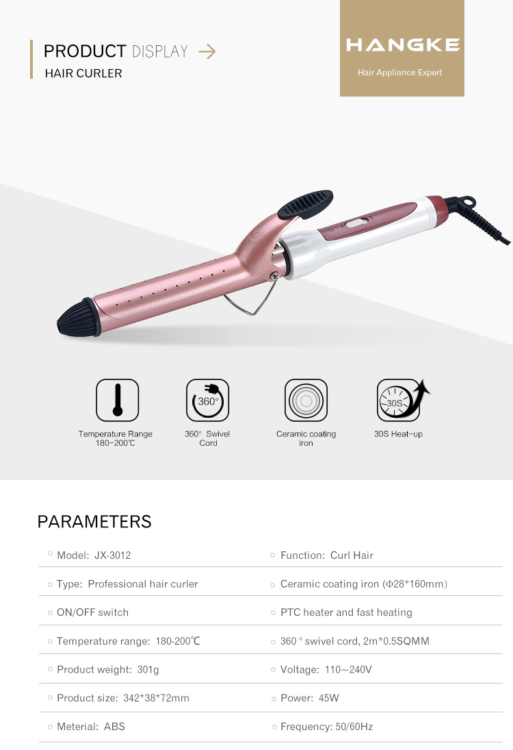 Curling tube size:Φ28mm*160mm